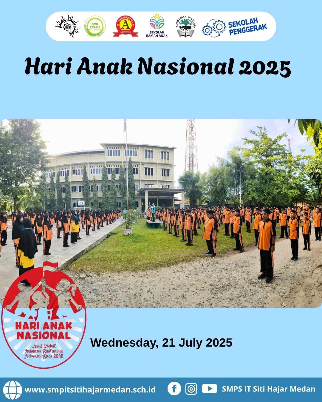 “Anak Hebat, Indonesia Kuat Menuju Indonesia Emas 2045” Medan, 21 Juli 2025 – Dalam rangka memperingati Hari Anak Nasional (HAN) 2025, SMPS IT Siti Hajar Medan mengadakan kegiatan yang menggembirakan...