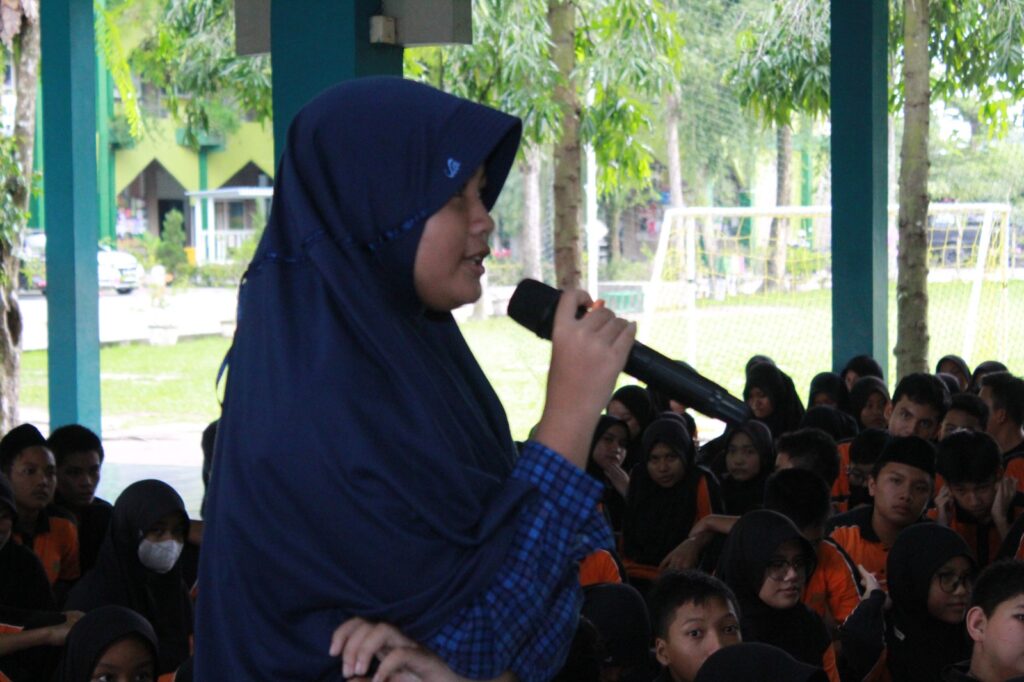 Salah satu momen penting dalam acara ini adalah sesi tanya jawab dengan pemateri. Para siswa dengan antusias bertanya tentang berbagai aspek perundungan, dan pemateri dengan sabar memberikan jawaban dan wawasan yang berharga.